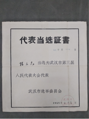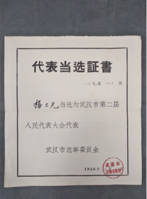 近日,杨立光先生之子杨丹教授向学校捐赠珍贵历史资料,其中包括杨立光先生当选武汉市第二、三届人民代表大会代表证书、省人民政府任命杨立光先生为湖北艺术学院顾问任命书、杨立光先生申报国务院政府特殊津贴手稿等珍贵历史资料11份。