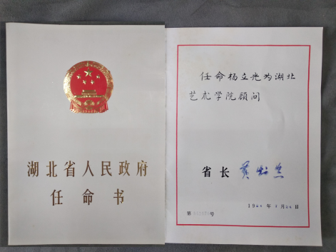 省人民政府任命杨立光先生为湖北艺术学院顾问任命书