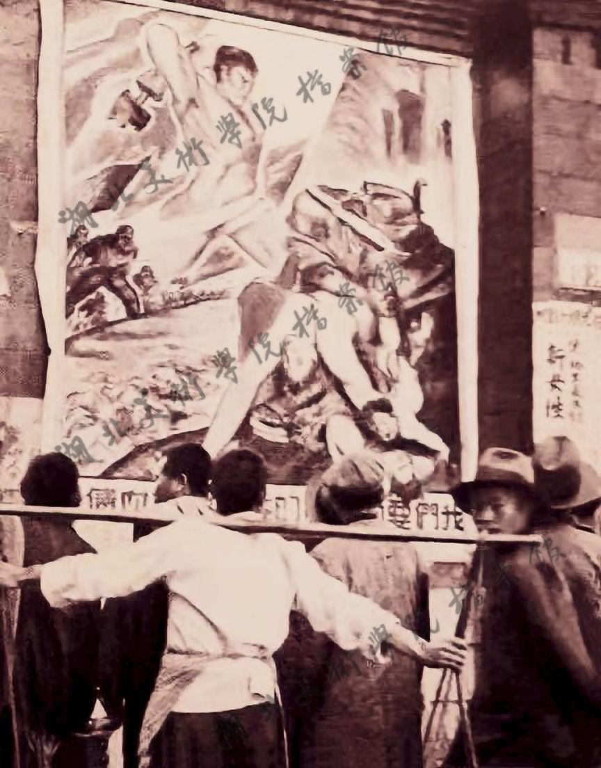 1938年,唐一禾带领师生在武汉中山公园举办抗战招贴画展览