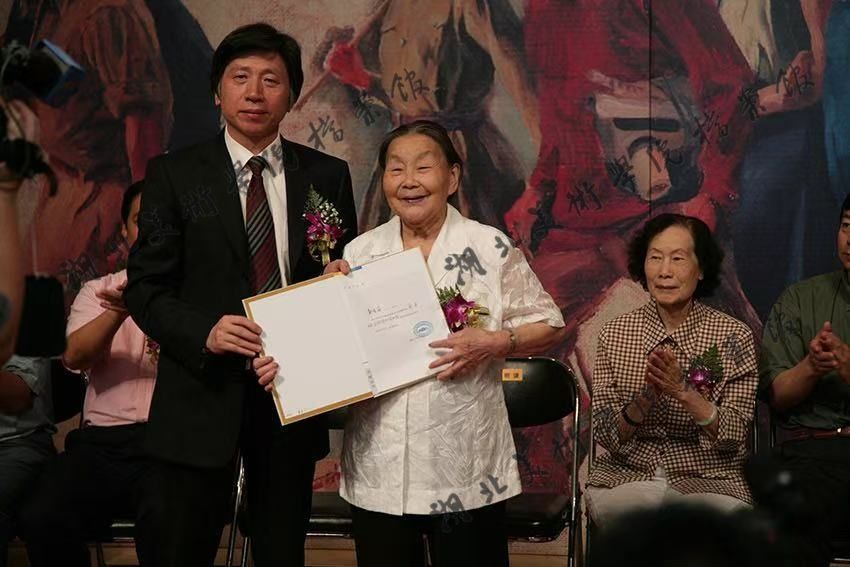 2007年,唐一禾艺术展开幕式暨捐赠作品仪式上,时任中国美术馆馆长范迪安为唐一禾先生的夫人熊明谦女士颁发收藏证书