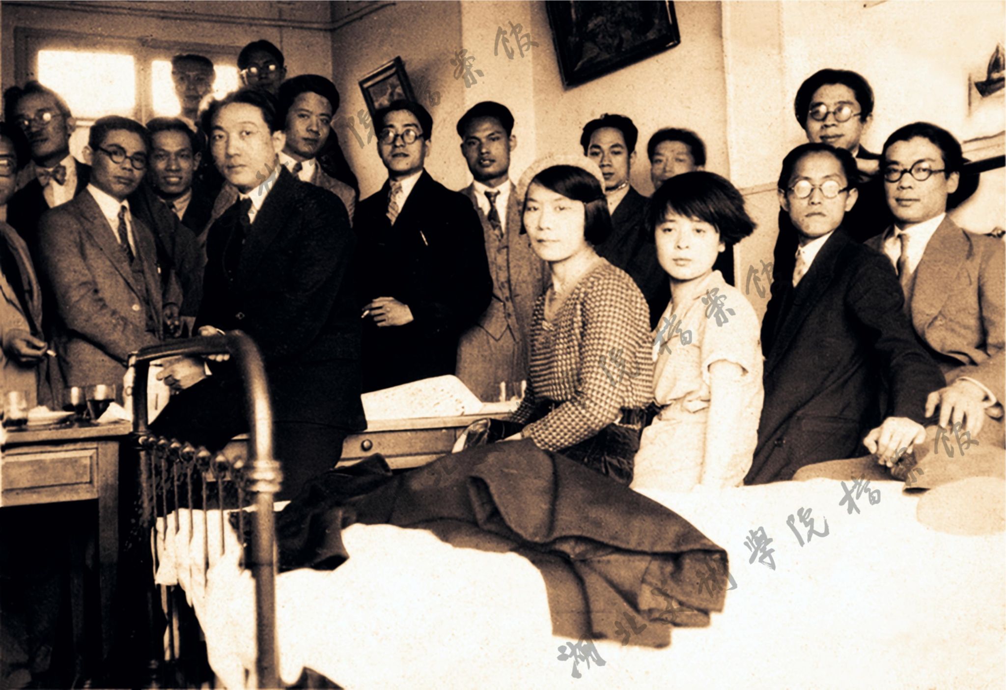 1933年,徐悲鸿(前左四)、常书鸿(后右一)与武昌艺专留法同学唐一禾(前右一)等人的合影照片
