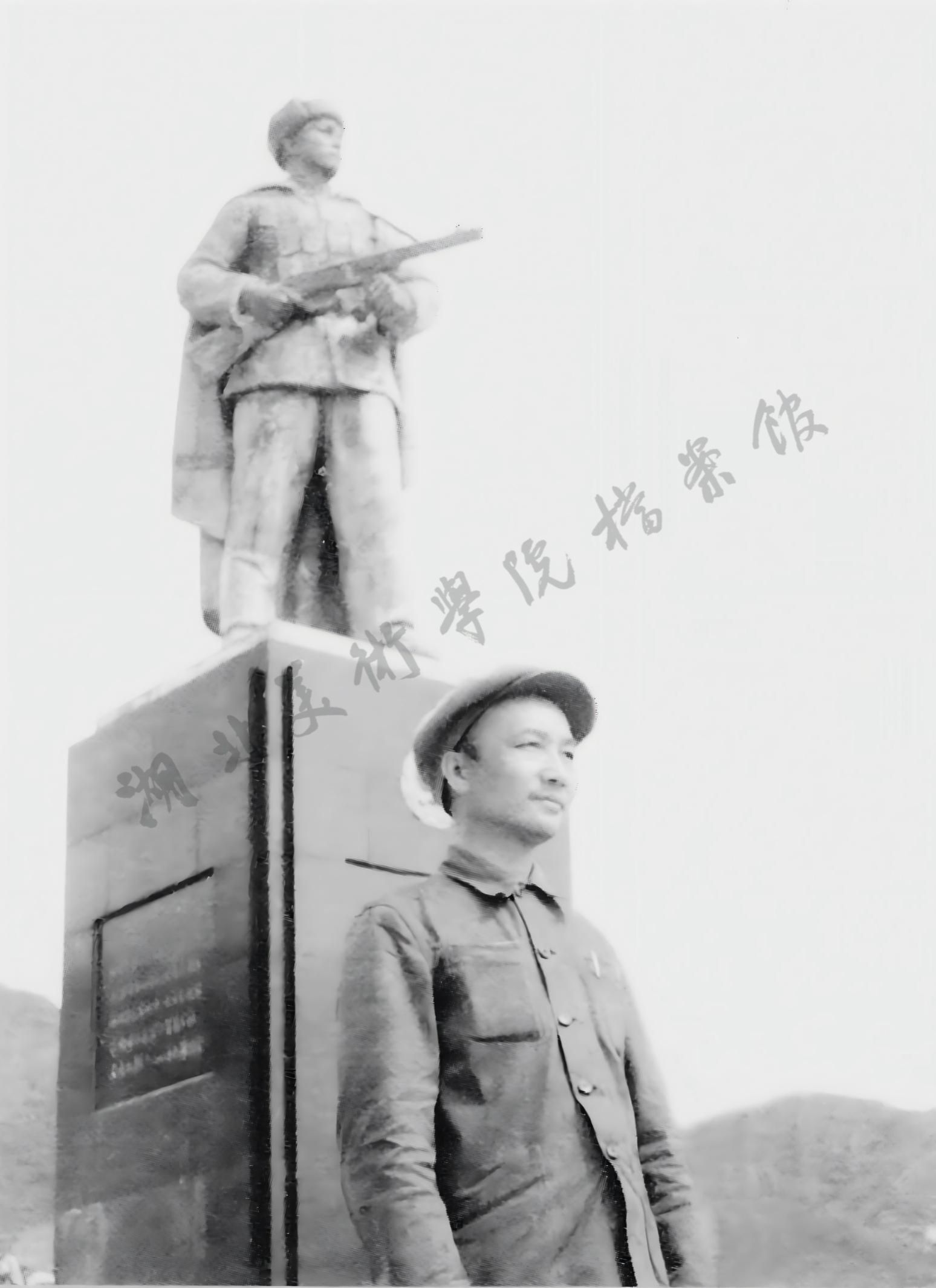 1958年,张祖武在朝鲜中国人民志愿军烈士陵园志愿军无名英雄纪念碑前留影