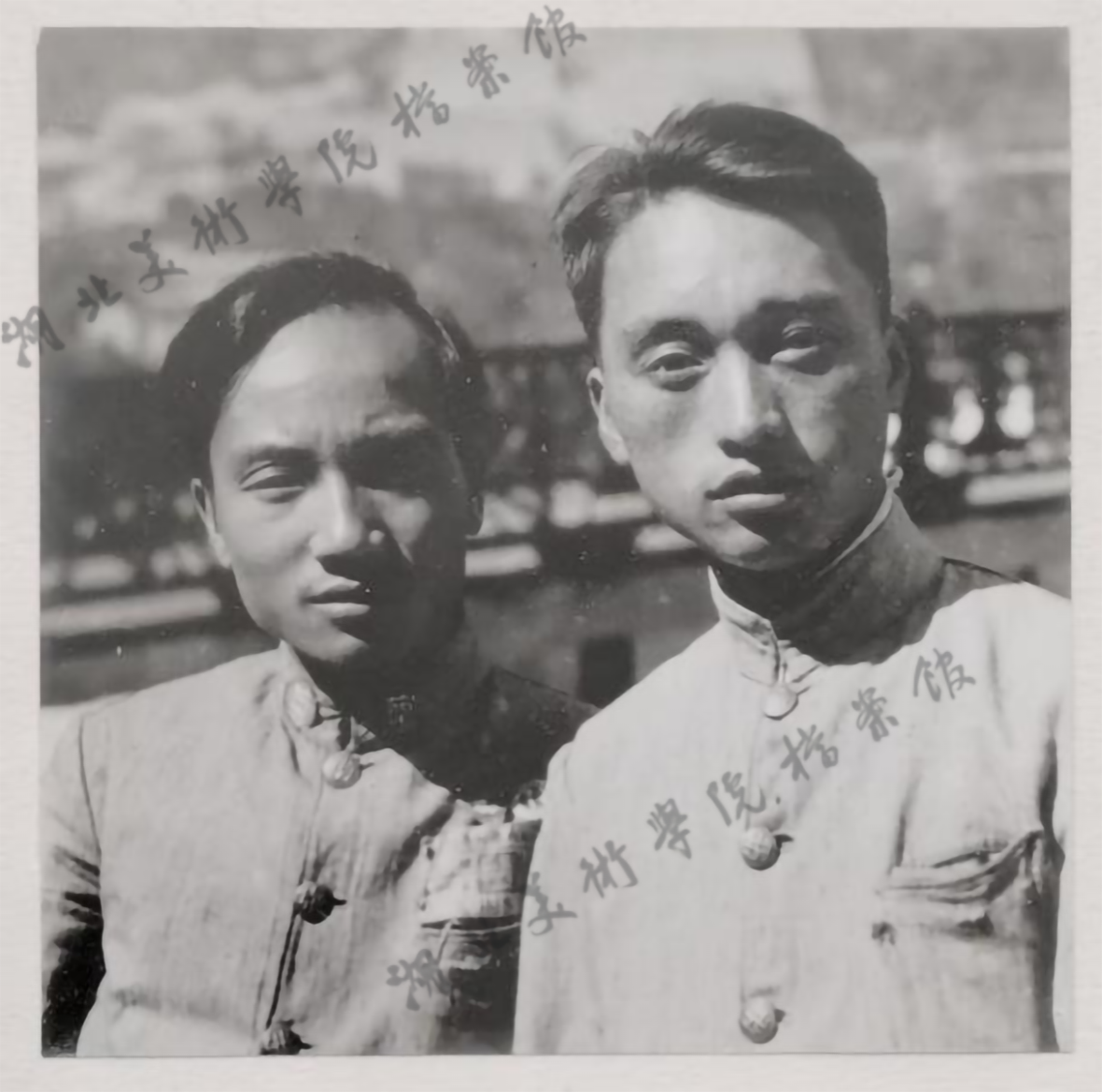 1936年,张祖武(左)在杭州国立艺专雕塑系读书时与同班同学王朝闻的合影
