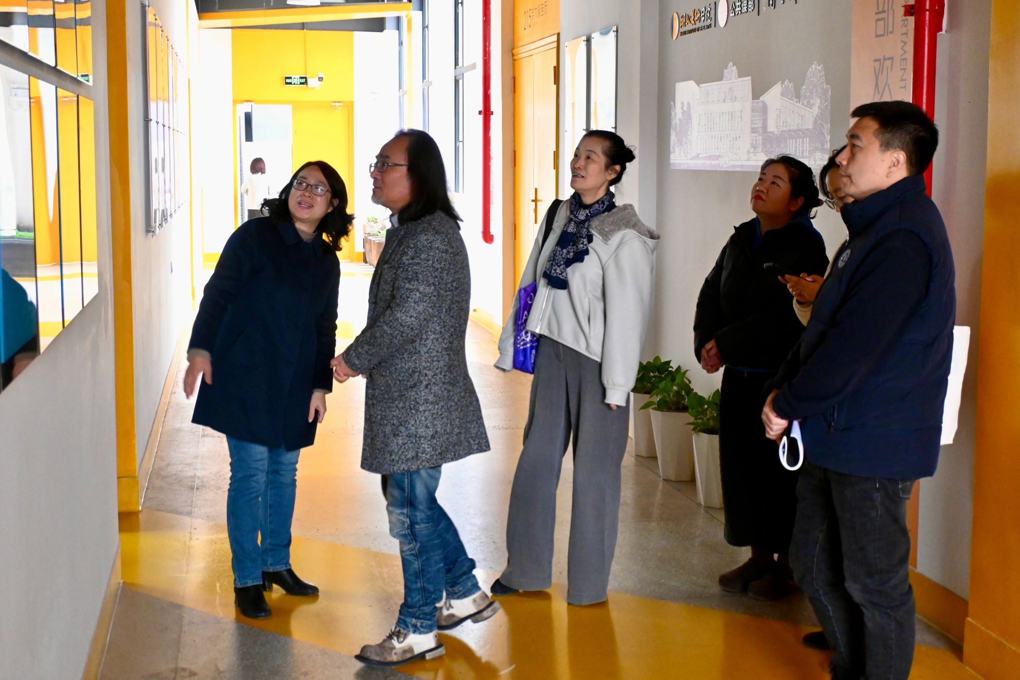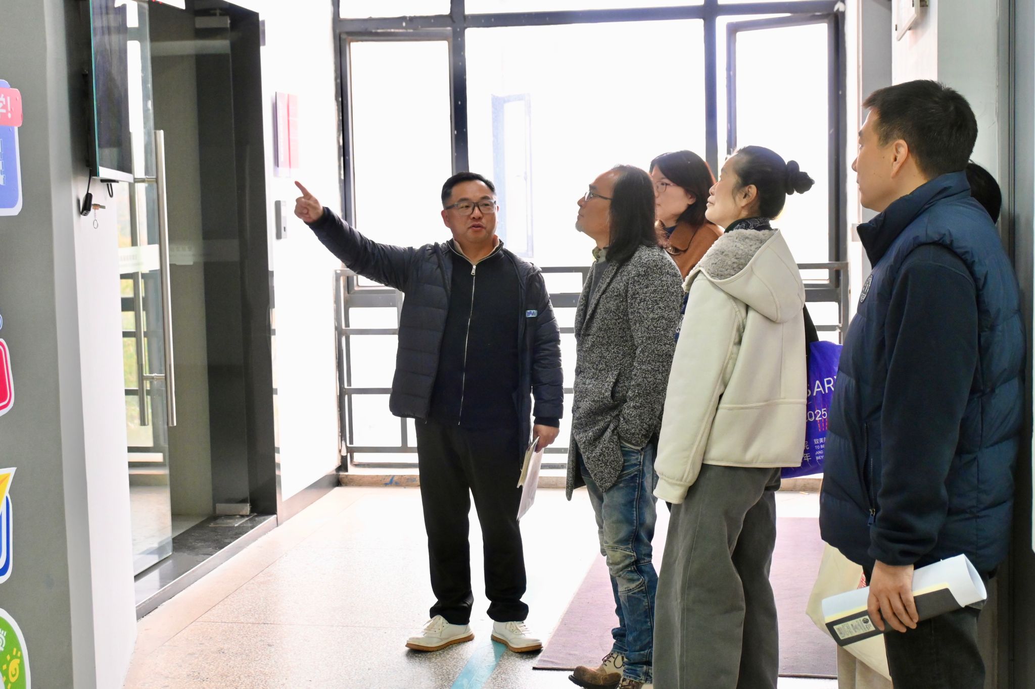 2025年12月12日,校党委常委郝孝飞带队,档案馆统筹组织党委组织部、党委宣传部、党委学生工作部、发展规划处、团委等部门负责人,深入各教学单位检查院史展陈空间建设情况并进行评分。