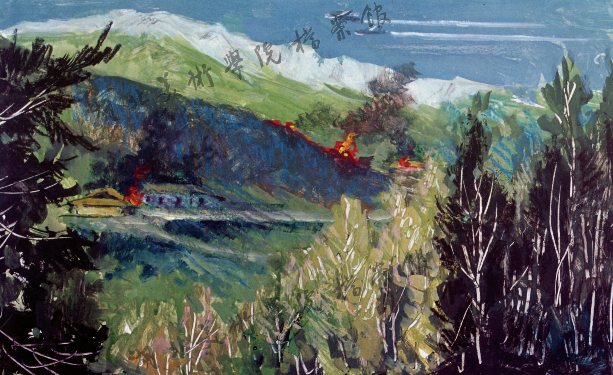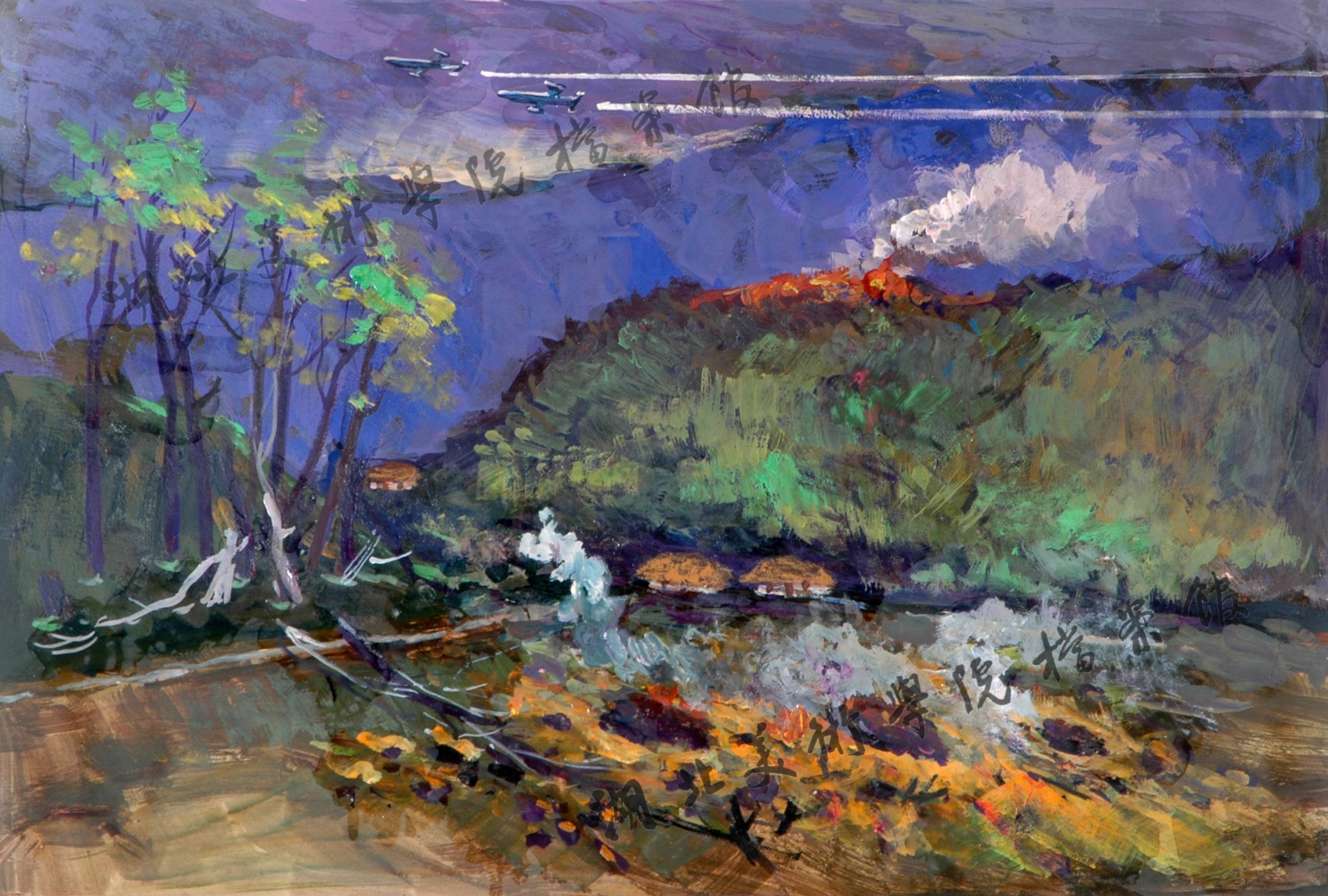 《燃烧的村庄》 48cm×30cm 水粉 2001年