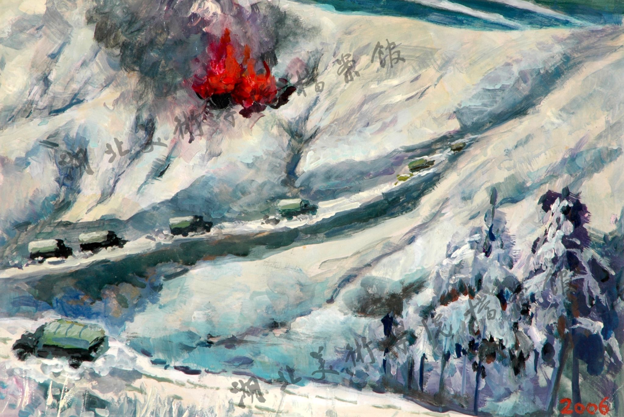 《被炮火封锁的交通线》 47cm×33cm 水粉 1999年