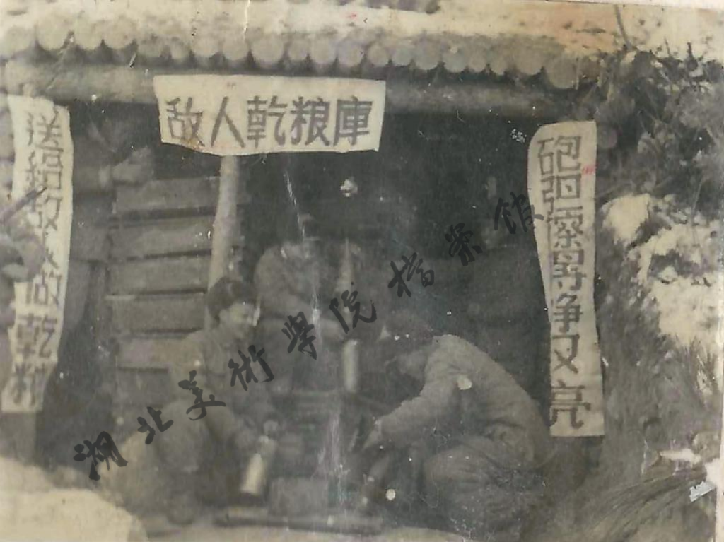宁璘保存的朝鲜战场上战友在“敌人干粮库”的合影