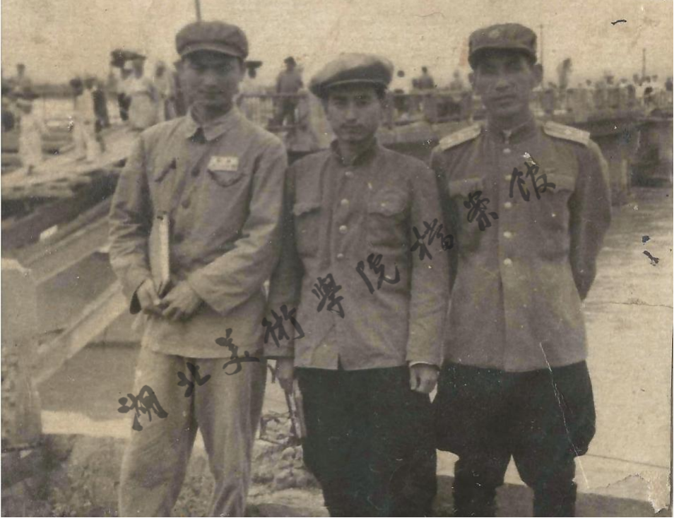 1953年朝鲜清川江边,宁璘(左)、朝鲜咸镜南道保卫部长(中)、