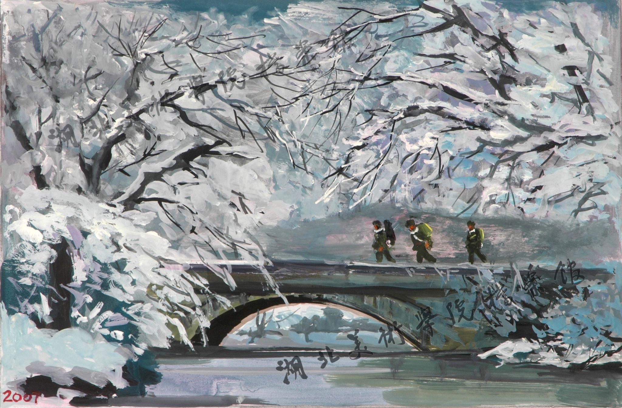 《雪后初晴 赴前线演出》 48cm×32cm 水粉 1997年