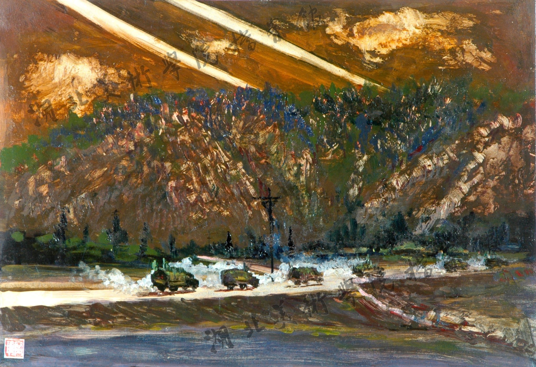 《向三八线挺进》 48cm×30cm 油画 1999年